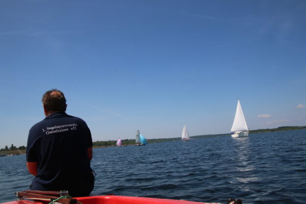 Nachdem am Freitag ein Sturmtief durchgezogen war, zeigte sich am Sonnabend das Wetter von seiner besten Seite: Sonnenschein und leichter Wind von Nord-West. Das Vorhaben des Ersten Segelsportverein Geiseltalsee – Fahrtensegeln – konnte beginnen. Es ging diesmal nicht um Sieg und Platz wie bei einer Regatta, sondern um den olympischen Gedanken – dabei sein ist alles. Dabei sein mit den Seglern aller Altersstufen, um Spaß an unserem gemeinsamen Hobby zu haben. So waren Vereinsmitglieder und Gäste in der Altersgruppe von 10 bis 70 Jahren vertreten.