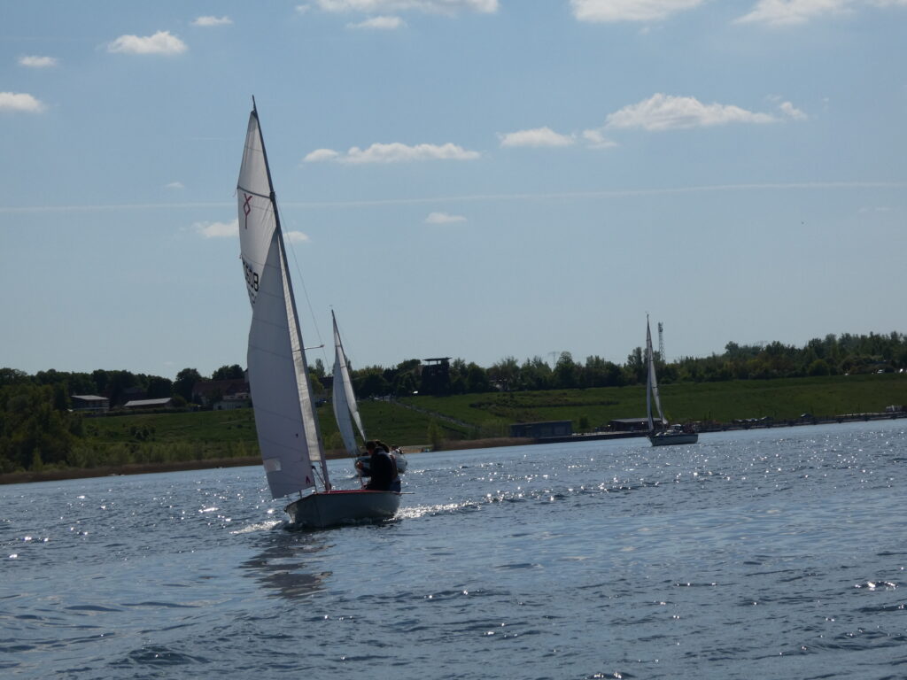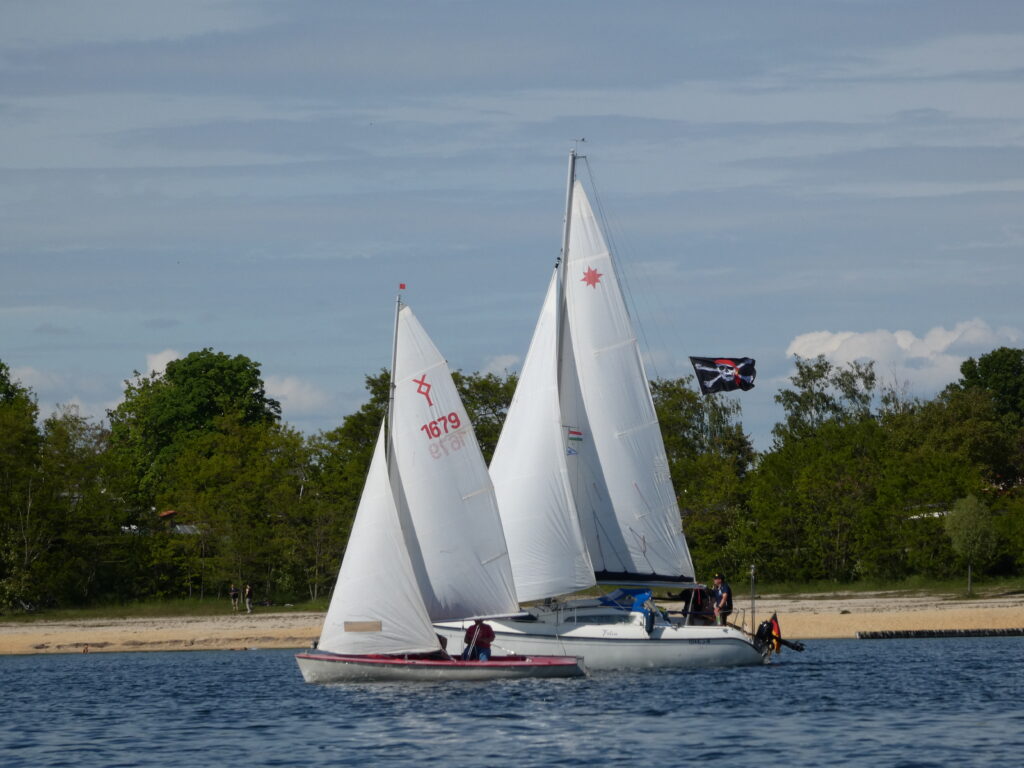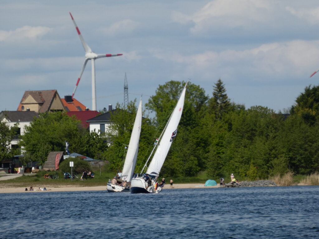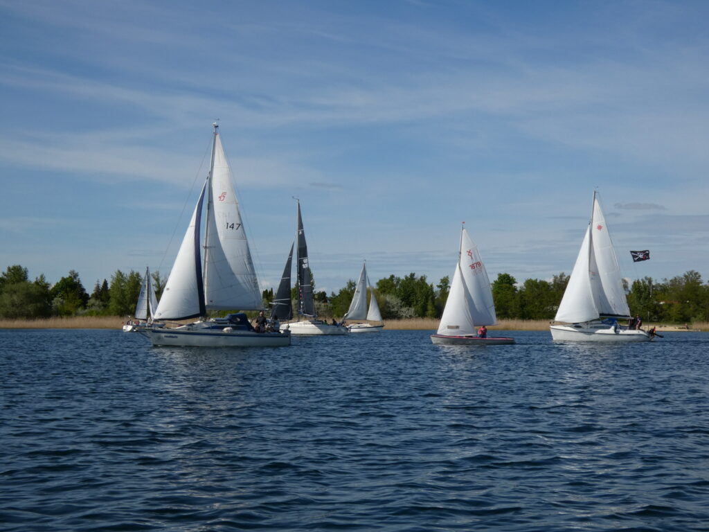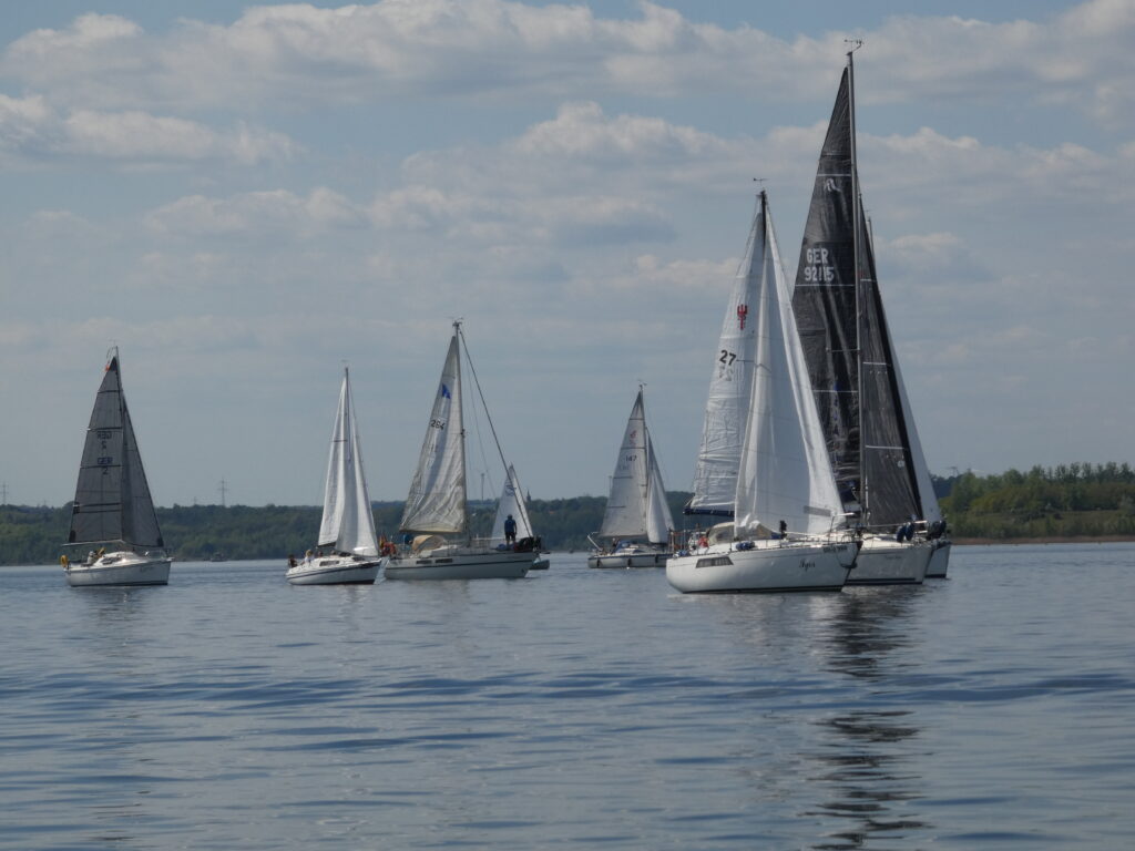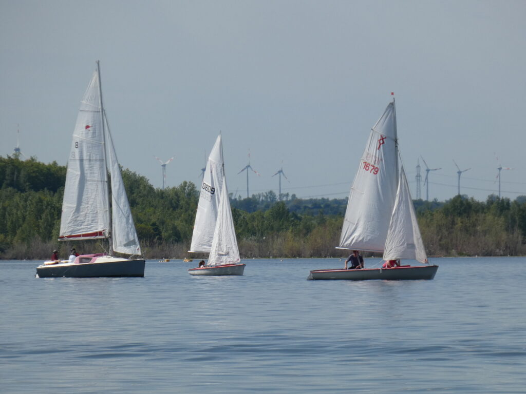Für alle, die mit uns gemeinsam und gemütlich auf das Wasser wollen, ist das ein passender Termin. Die Natur, das Wasser und das Segeln gemeinsam genießen – unsere Geschwaderfahrten. Das Wetter sorgte dafür, dass eben gerade genug Wind in den Segeln war, um nach Frankleben zu segeln. Erfreulich ist das offenbar wachsende Interesse an dieser Art der gemeinsamen, entspannten und gemütlichen Ausfahrt. Zum Auftakt der Saison an der Marina in Braunsbedra lieferten die teilnehmenden Boote eine schöne Kulisse auf dem Wasser.