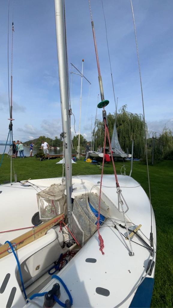Wir reisten am Freitag, dem 01.09. nachmittags vorerst nur zu viert an. Sofort fingen wir an, unsere Zelte und Boote aufzubauen. Den ersten Abend verbrachten wir dann mit einem Sportsfreund aus Zwenkau, welcher auch zur Teilnahme an der Regatta angereist war. In den ersten Regattatag starteten wir mit einem gemeinsamen Frühstück. Während wir frühstückten, kamen die beiden Nachzügler an und setzten sich zu uns. Nach dem Essen widmeten sich alle ihren Aufgaben, um optimal auf die Regatta vorbereitet zu sein. Die beiden Nachzügler bauten ihr Boot auf und die anderen beschäftigten sich damit den perfekten Trimm zu finden, bis die Steuermannsbesprechung anstand. Nicht nur 420er nahmen an der Pokalregatta teil, sondern auch zahlreiche andere Jollenklassen. Für diese Regatta wählte der Verein des SSC Seeburg einen Dreieckskurs. An Tag 1 starteten wir bei leichtem Wind und segelten drei Wettfahrten, wobei die letzte Wettfahrt abgebrochen wurde, da der Wind zu sehr abflaute. Später wurde für die Anwesenden gegrillt und der Tag endete mit vielen Gesprächen. Am zweiten Tag begrüßte uns mehr Wind. Auch an diesem Tag bestritten die Segler zwei wertende Wettfahrten. An Land begannen wir direkt damit, die Boote abzubauen. Danach fand die Siegerehrung statt. Wir erreichten den ersten, vierten und sechsten Platz. Als die Siegerehrung beendet war, bauten wir noch unsere Zelte zusammen und sicherten die Boote auf den Hängern. Nach ein paar finalen Gesprächen verabschiedeten wir uns vom Süßen See und kehrten in unseren Verein zurück.