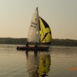 Die Windbedingungen konnten die Veranstalter aber leider nicht beeinflussen. Der Wind hat dann aber dennoch ausgereicht, um 4 Wertungsdurchgänge fahren zu können. Unsere Jugend im 420er konnte mit den Feld mithalten und belegte einen 6. Platz bei den Jollen und in der Yardstickwertung von 27 Booten den 20 Platz. Die Erwachsenen konnten in der Ixylon Klasse von 10 Booten den 7. Platz belegen. Besonders stolz sind wir auf Johannes, der den 2. Platz belegte und vier Boote hinter sich ließ. Hierfür gab es sogar einen Pokal – der erste in unserer Vereinsgeschichte.